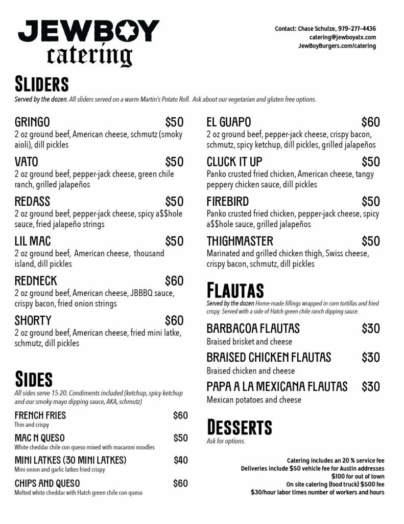 We’re happy to offer catering service for events of all sizes. From small gatherings to large events we love all appetites, big or small. To submit an inquiry, please click on the link below the menu and we’ll get back to you as soon as possible.